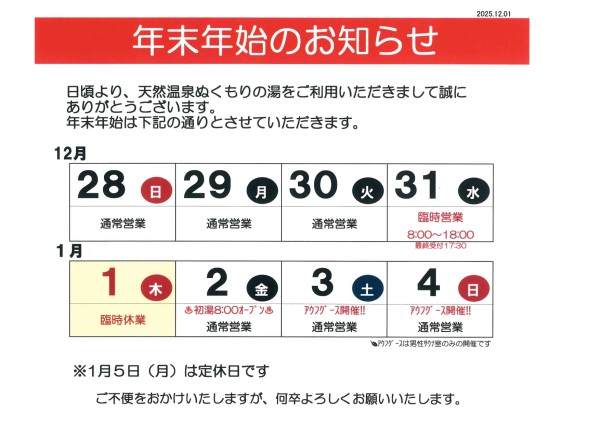 ♨ 年末年始のお知らせ ♨