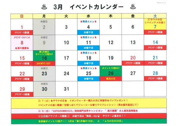 ♨3月 イベントカレンダー♨